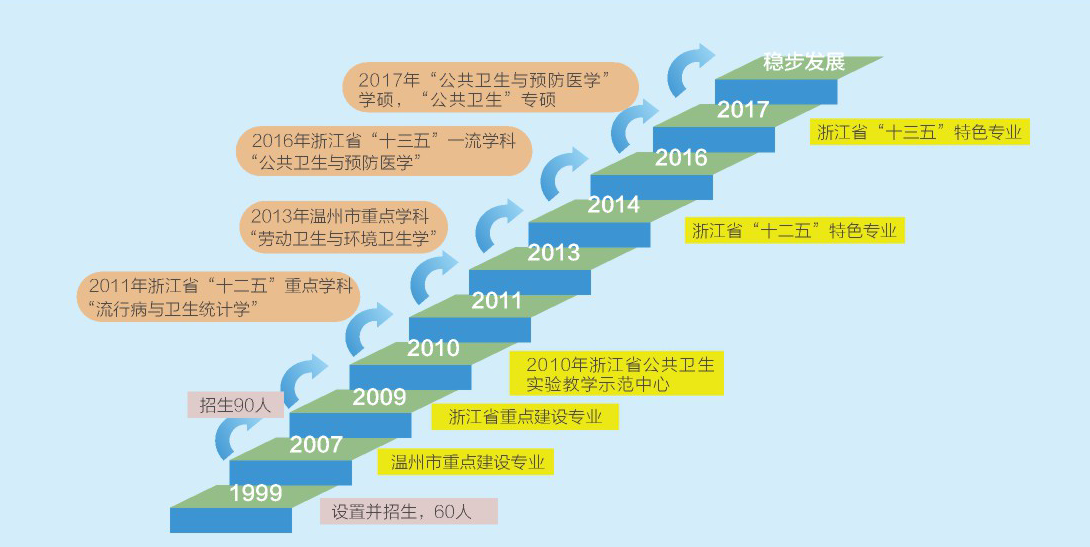 我校自建校伊始就开始培养预防医学人才,为了进一步满足国家和社会的需求,于1999年正式设立预防医学专业并开始招生,至今已满20周年,是省属高校中最早开始招收预防医学专业学生的学校,也是省内公共卫生与预防医学招生规模最大的学校。我校预防医学专业自设立以来,锐意进取,稳步发展,专业和学科建设位居省内第一梯队,拥有“公共卫生与预防医学”一级学科学术型硕士点和“公共卫生(MPH)”专业型硕士点,先后入选为“浙江省重点建设专业”、浙江省“十二五”、“十三五”特色专业和浙江省“十三五”一流学科。设有流行病与卫生统计学、劳动卫生与环境卫生学、营养与食品卫生学、卫生毒理学和环境地理信息学5个教研室,现有专职教学、科研人员71人,其中教授(含研究员)11人,副教授(含副研究员)20人,另从美国、加拿大等柔性引进、特聘客座教授16人,现有博士生导师4人,硕士生导师22人和校外行业导师15人,其中入选教育部新世纪优秀人才2人,浙江省“钱江学者”特聘教授1人,省杰青1人,省151人才4人。2016年以来,本专业共主持国家级课题27项,省部级课题35项,各类课题经费达1200万元,发明专利授权9项,发表SCI、SSCI、核心期刊论文共140余篇。热烈欢迎广大莘莘学子踊跃报考,实现人生梦想和自我价值。