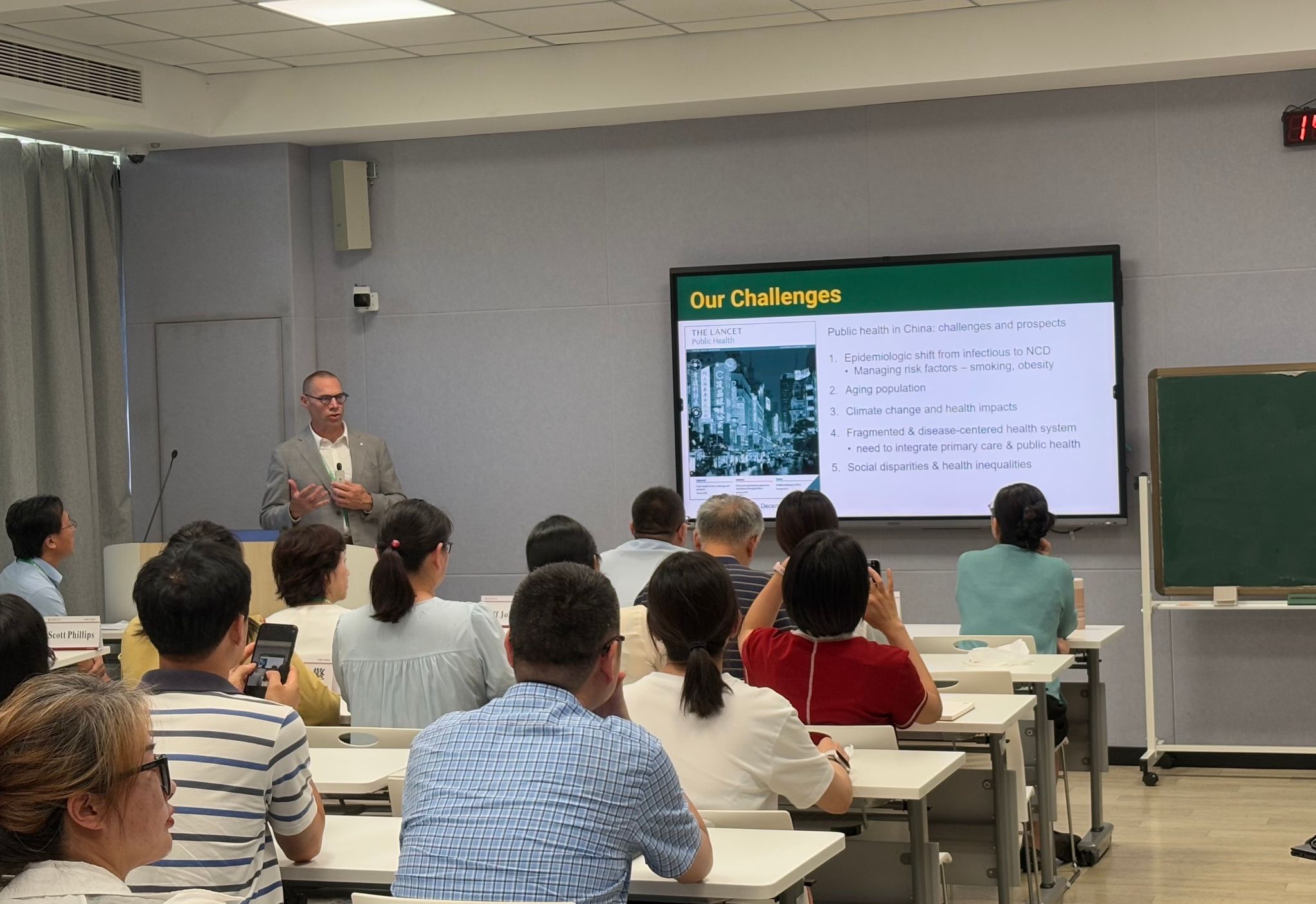 阿尔伯塔大学杏吧 院长Jeff Johnson教授以“中加公共卫生研究与教育:共同的挑战与机遇”为题,系统分析了两国在公共卫生领域面临的相似挑战,并探讨了未来合作共赢的巨大潜力。