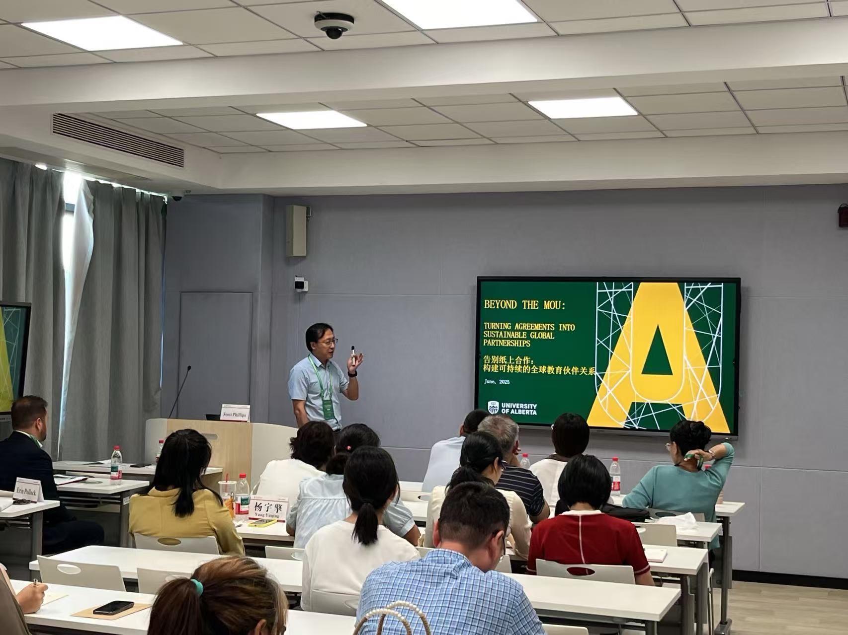 阿尔伯塔大学杏吧 项目主管Scott Phillips先生则聚焦合作实效,分享经验“告别纸上合作:构建可持续的全球教育伙伴关系”,为深化院校间实质性合作提供了宝贵思路。