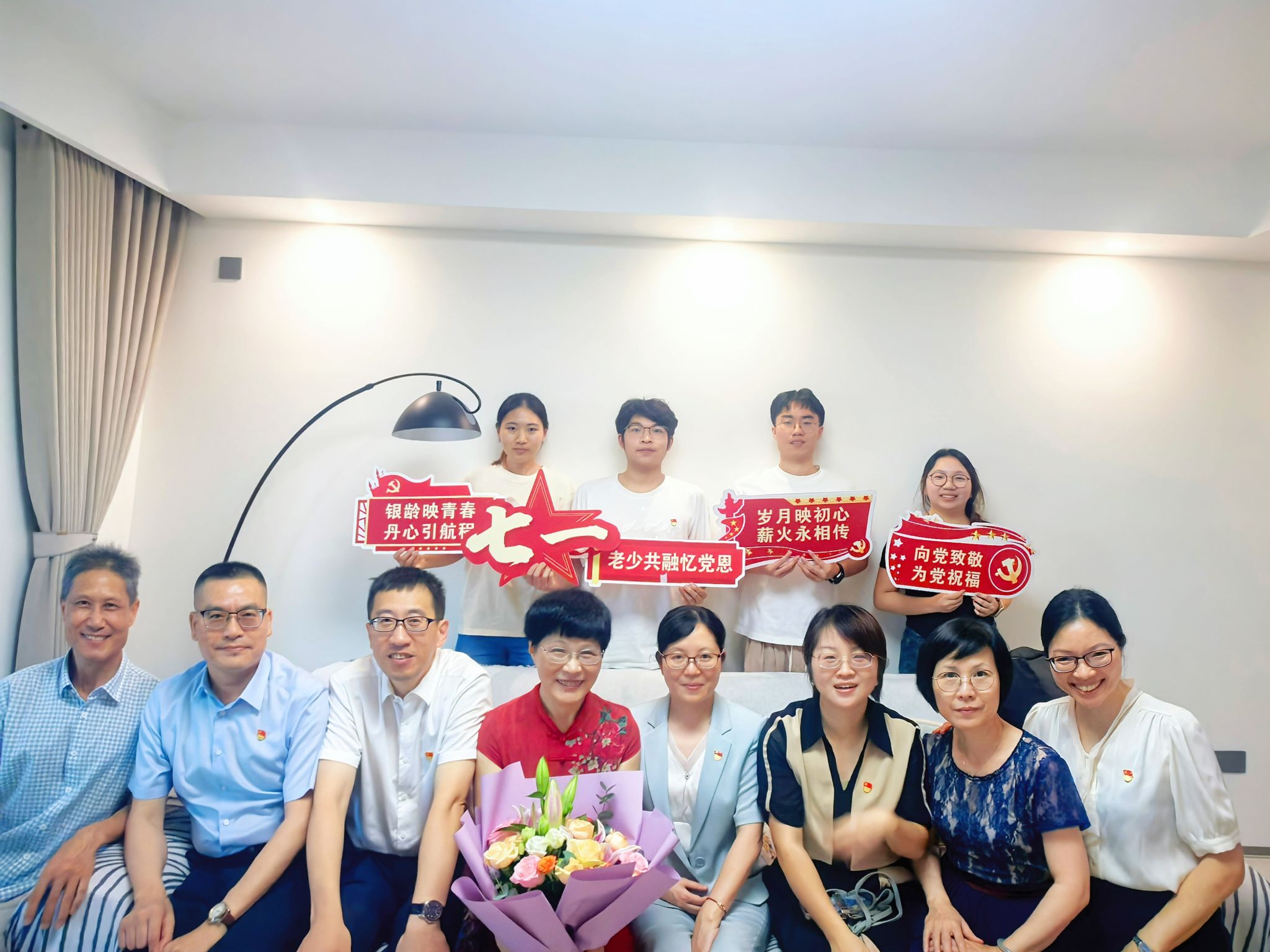 7月1日,杏吧 党委组织开展了“银龄映青春 丹心引航程”庆祝建党104周年暨关心下一代工作主题活动。学院领导班子成员带领教师代表、学生代表,前往温州市优秀共产党员、原预防医学系教研室主任、预防医学系教工党支部书记叶晓蕾老师家中,向她致以节日的诚挚问候和崇高敬意,传递组织的深切关怀。