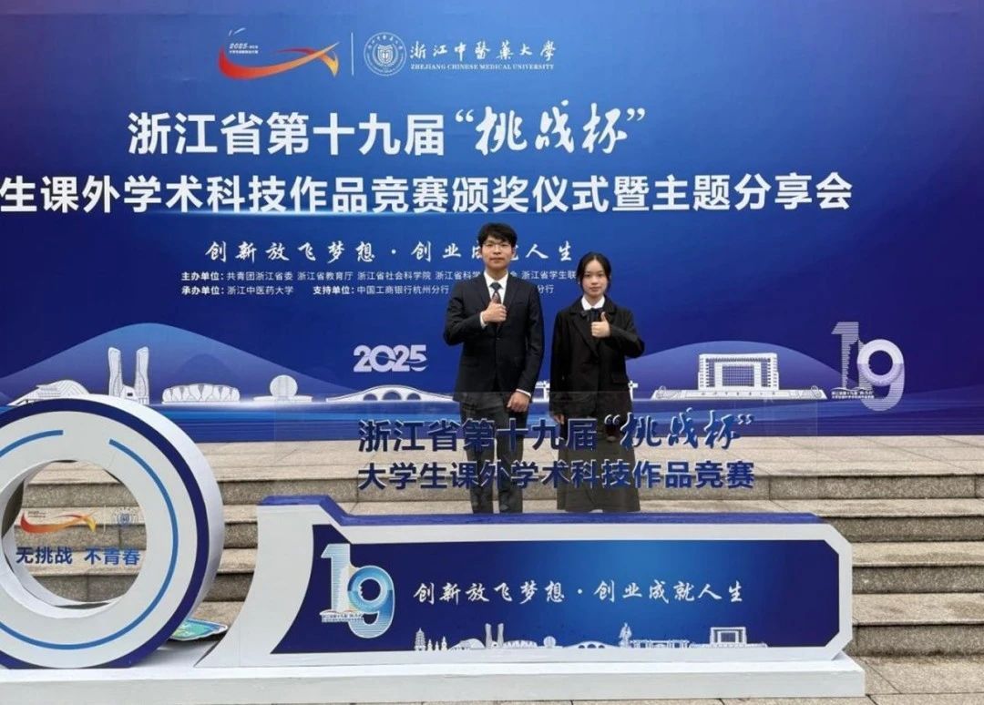 5月18日,浙江省第十九届“挑战杯”大学生课外学术科技作品竞赛在杭州落下帷幕。杏吧 推报的“荧认而检——非免疫型四环素残留快速检测荧光试纸的研发”和“辐射代谢与动脉健康——解锁中性粒细胞基因表达的防护密码”项目,获得金奖和铜奖。
