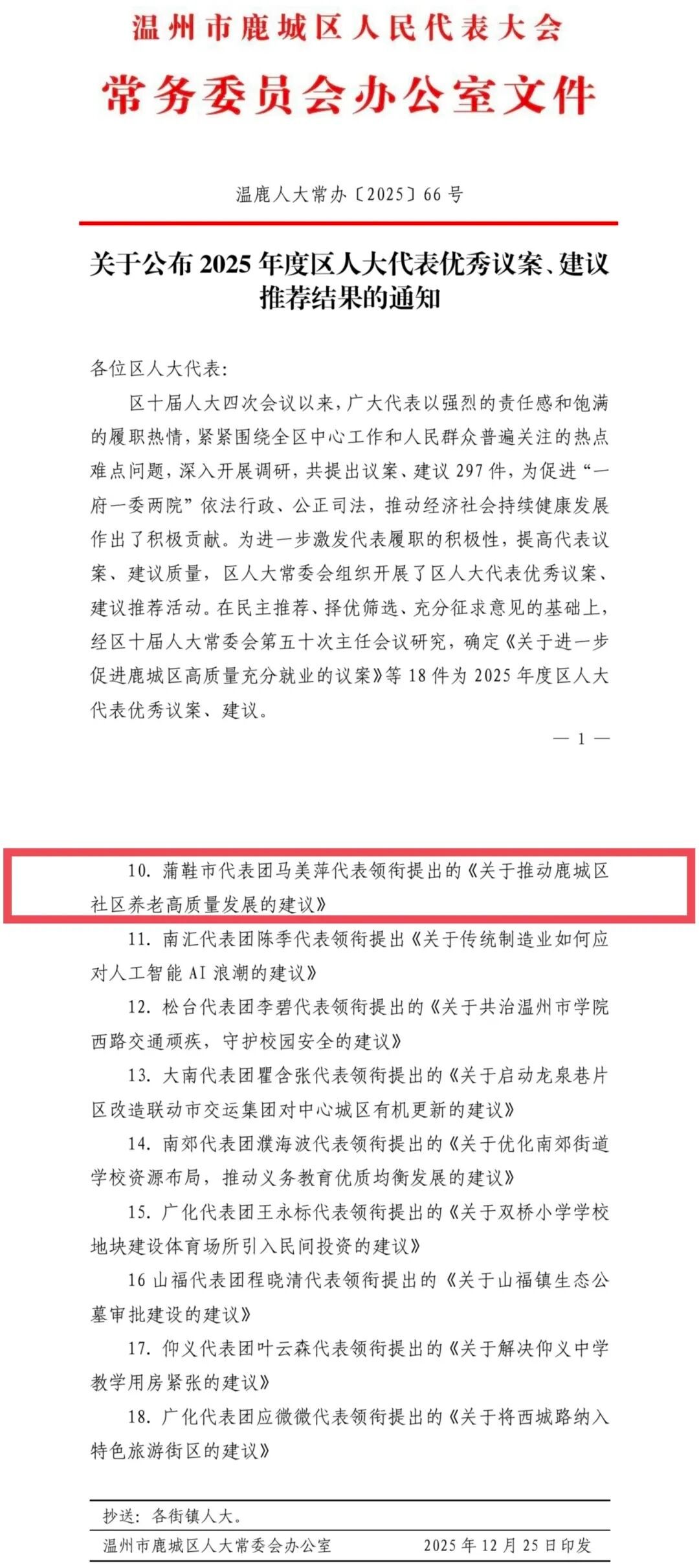 该建议荣获年度优秀建议,既是对马美萍副教授认真履职、建言献策成果的充分肯定,也是学院教职工积极参与地方社会建设、服务区域发展担当作为的生动体现,彰显了学院师生深厚的家国情怀和做社会责任感。