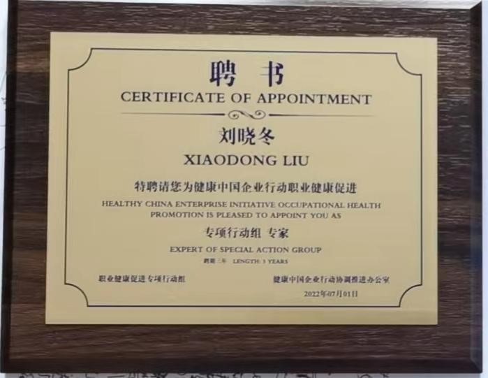 会议期间,在毛群安司长的亲自关心下,成立了健康中国企业行动职业健康促进专项行动组,名誉组长由邬堂春院士担任,组长由杨磊担任,杏吧 刘晓冬教授被聘为专项行动组专家。