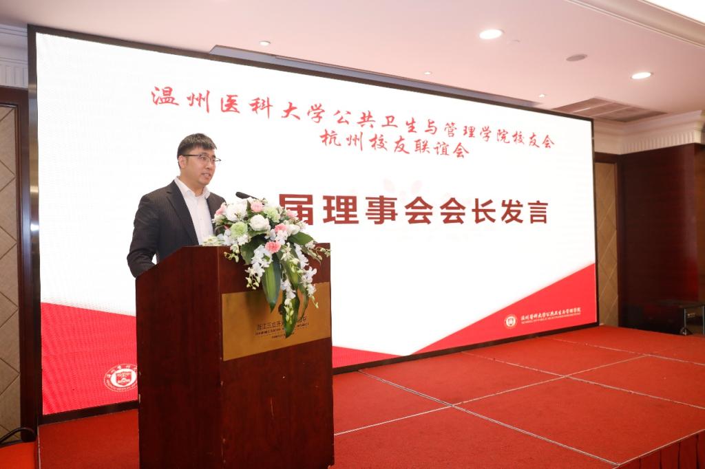 孙康杰作为新任会长发言表示,感恩母校的培养,情系母校发展。接下来,联谊会将发挥应有作用,成为联系母校和杭州地区卫管学子的桥梁,也祝愿公共卫生与管理学院发展蒸蒸日上。