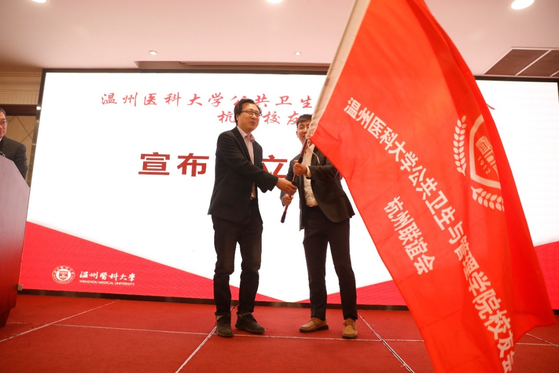 随后,公共卫生与管理学院院长刘晓冬宣布公共卫生与管理学院校友会杭州校友联谊会正式成立,并为联谊会会长孙康杰授旗。现场嘉宾为联谊会会长、副会长、秘书长、副秘书长、理事们颁发聘书。
