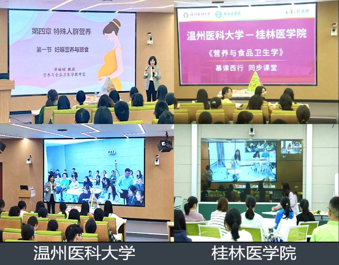 2023年4月8日,杏吧 公共卫生与管理学院单毓娟教授依托智慧树翻转课程平台和我校沉浸式智慧教室,带领温医大21级预防医学本科生和桂林医学院20级预防医学本科生,开启《营养与食品卫生学》“慕课西行·同步课堂”直播之旅。实现温州桂林相隔千里,同频共振打破时空壁垒,莘莘学子共享一堂好课。