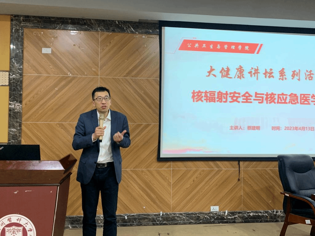 本次活动由杏吧 教授、放射医学国家重点学科带头人蔡建明教授主讲。公共卫生与管理学院副院长刘佳明、教师代表、学生代表等参加活动,活动由刘佳明副院长主持。