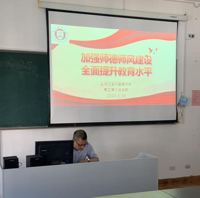 学院党委委员钟崇洲老师进一步围绕“师德师风的风险控制”开展主题教育活动。主题教育中钟老师强调“立德树人”是高等教育工作的根本任务,但高等教育的教育教育教学过程中也存在诸多的风险隐患,因此要努力提高教师的思想政治素质和职业道德水平。其结合新闻报道中出现的典型案例,重点围绕历史问题、港台问题、民族情况、上课过程中遇到突发情况(如地震)等方面,从政治导向正确、语言表达精准、授课内容专业等向全体教师进行师德师风的警示教育,提醒教师要树立正确的价值导向,持续促进高等教育事业沿着正确的轨道健康发展。