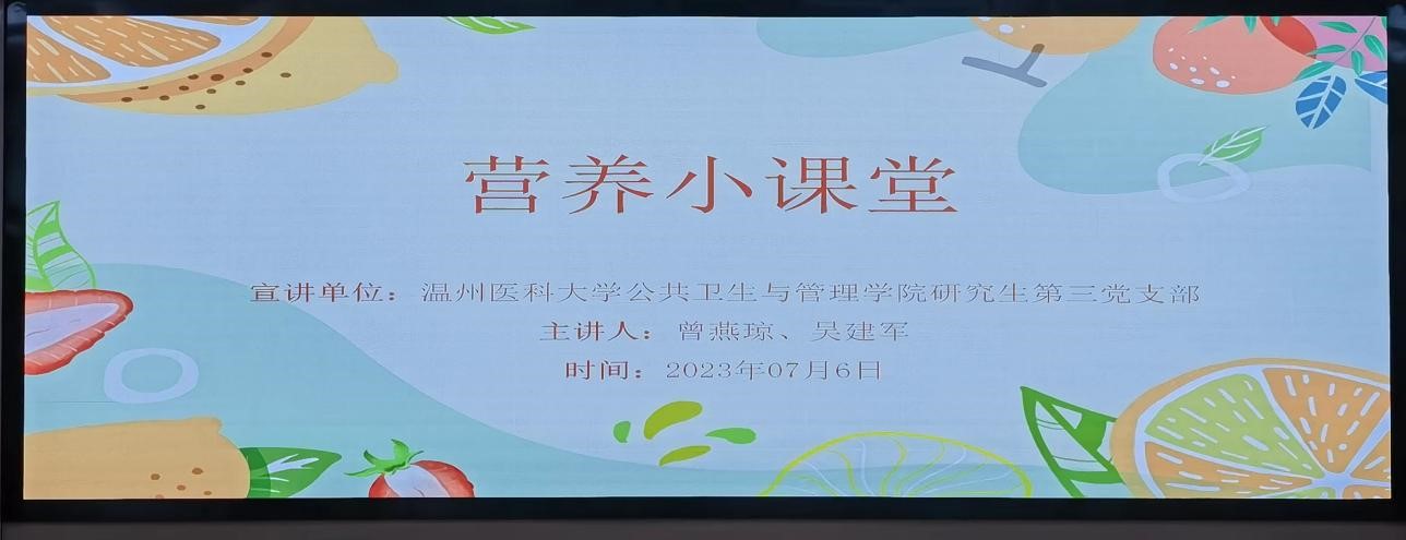 为积极响应以“学思想、当先锋、促践行”为主题深入开展“红七月·服务月”活动号召,7月6日上午,杏吧 研究生第三党支部围绕“共享社·幸福里”建设重点工作以及“一老一小一特”等重点人群需求,前往龙湾区罗西社区党群服务中心,开展了“营养小课堂”健康知识科普宣教活动,旨在引导小朋友建立正确的饮食观念、学会辨别并远离“三无食品”、正确认识食品添加剂的利弊等等,促进儿童健康成长。