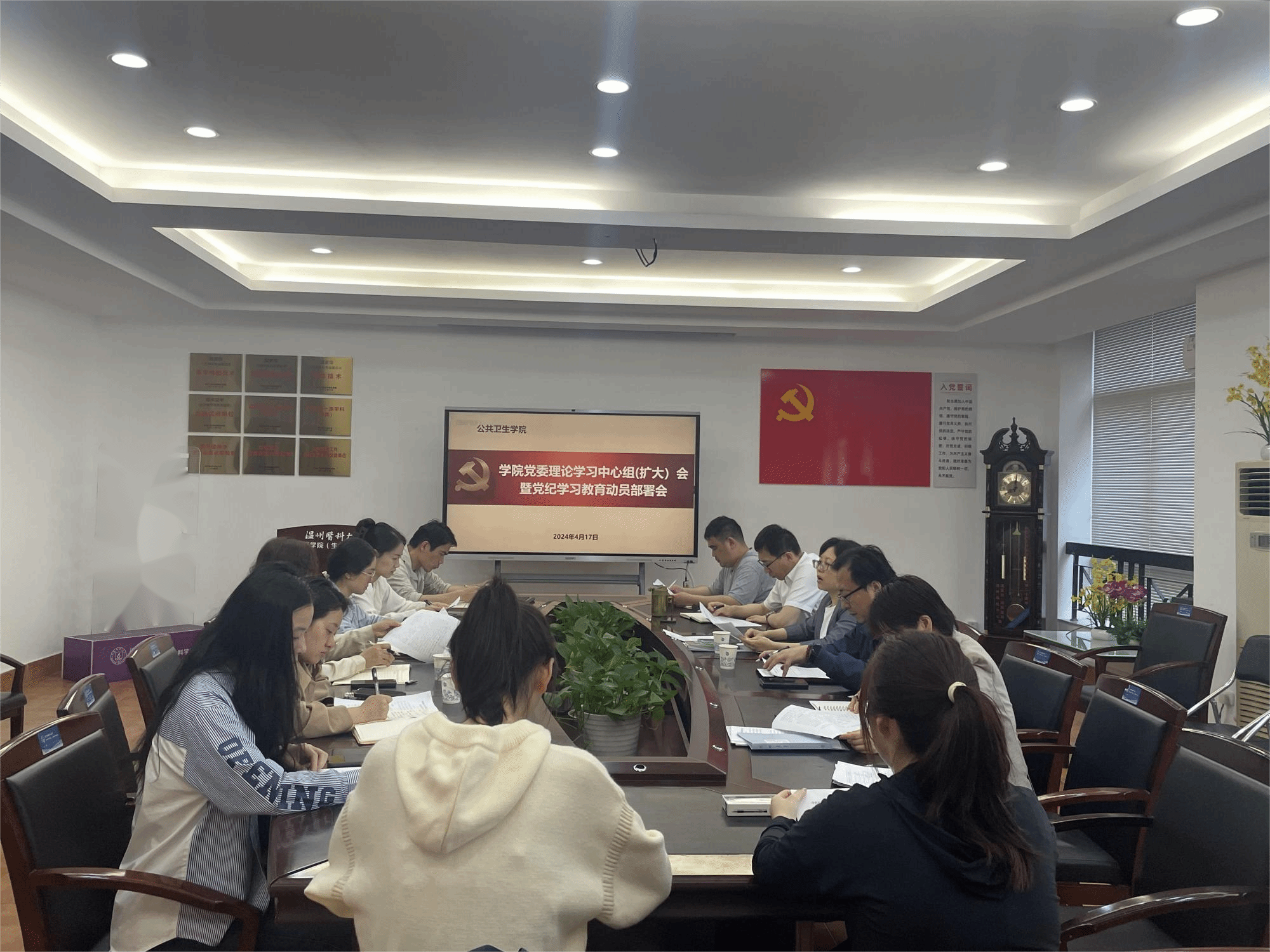 4月17日,杏吧 召开党委理论学习中心组(扩大)会议,传达学习贯彻习近平总书记关于党纪学习教育的重要讲话和重要指示精神,部署学院党纪学习教育工作。会议由学院党委书记王芳主持,学院党委理论学习中心组全体成员,师生党支部书记参加会议。