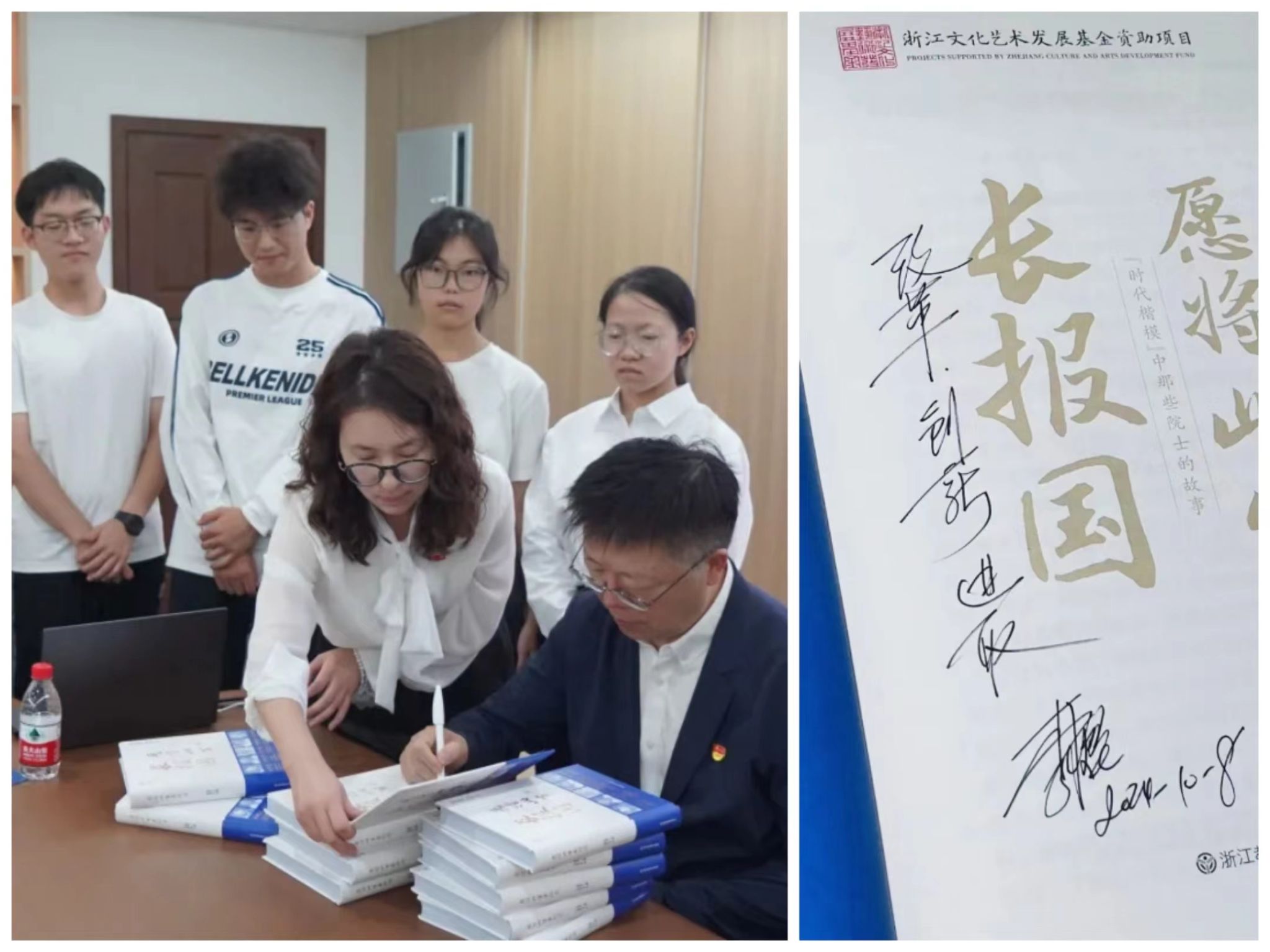 李校堃为在座学生签书赠言。