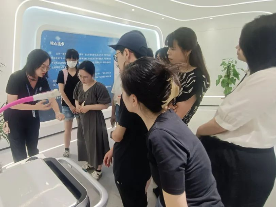 学院一行人参观了公司展厅里中国数理医学学会的发展情况与超声大数据中心的成果。代表团在讲解中了解到德尚韵兴在医疗大数据、人工智能领域的高新技术产品,其AI-SONIC系列超声辅助诊断系统在甲状腺疾病等诊断领域展现了卓越的性能,一行人还体验了公司先进的医疗科技产品,学生针对自己感兴趣的方面提出了问题。