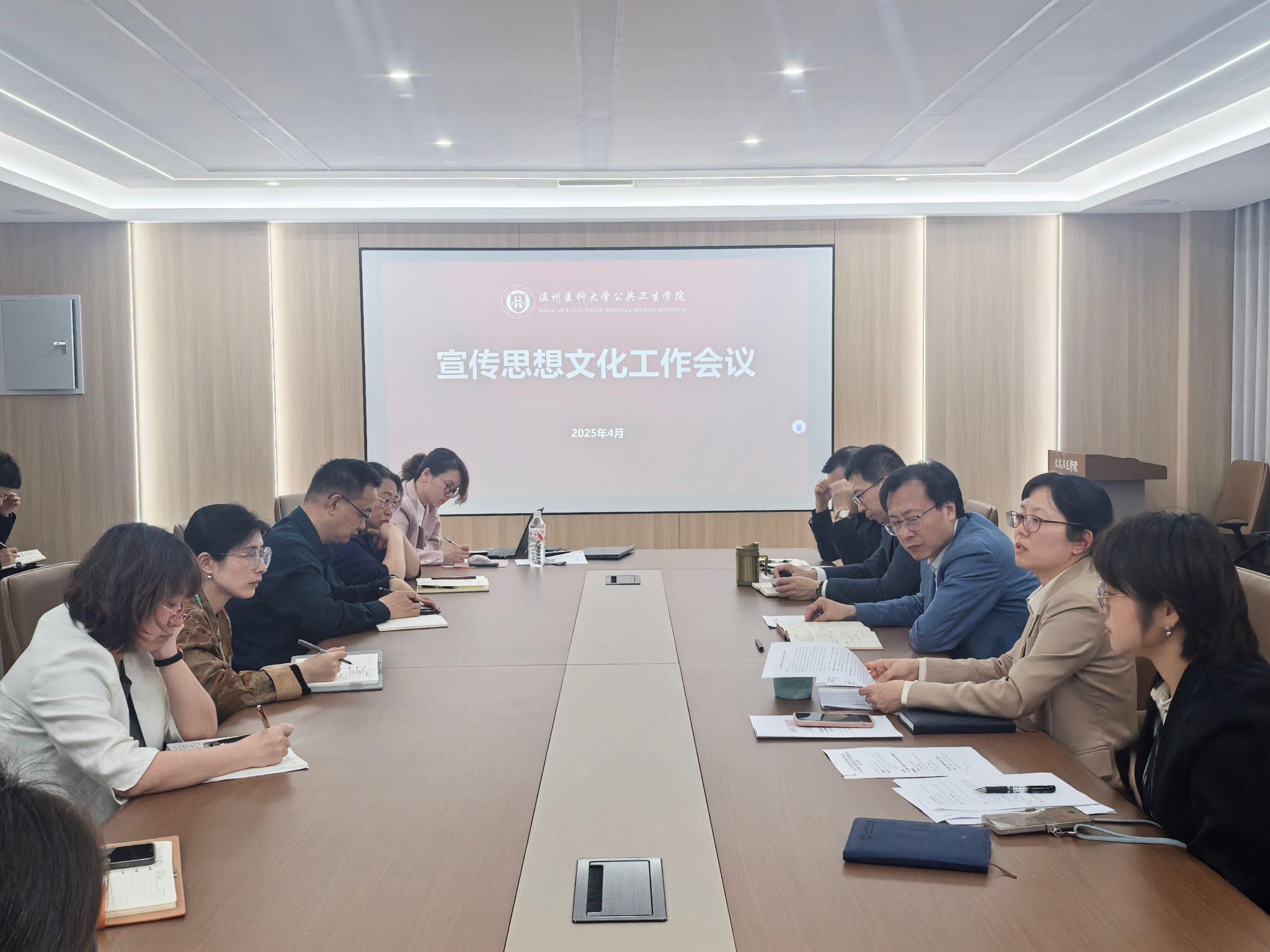 王芳强调,要构建多维度思政育人共同体,开创宣传思想文化工作新局面。一要高举思想旗帜,筑牢育人根基。深化理论学习,落实“第一议题”巡听旁听制度,依托党支部强化教职工政治理论学习,为学院发展提供思想保障。二要深化思政教育,构建育人新格局。围绕新时代立德树人工程,推进学科、教学、教材、管理体系与思政工作深度融合,实施“仁心铸魂”“肃学正身”等四大工程,开展大思政课、校园文化、实践育人等十项行动,打造育人宣传长效机制。三要讲好育人故事,提升宣传质效。聚焦政策导向、特色亮点、人物故事等维度,优化选题策划与传播手段,加强校内外媒体协同联动,力争实现省级外媒宣传突破,全方位展现学院高质量发展成果与社会服务成效。四要压实责任链条,守牢意识形态阵地。严格落实意识形态责任制,强化阵地管理,规范境内外学术活动审批流程,守牢安全底线,营造清朗育人环境。