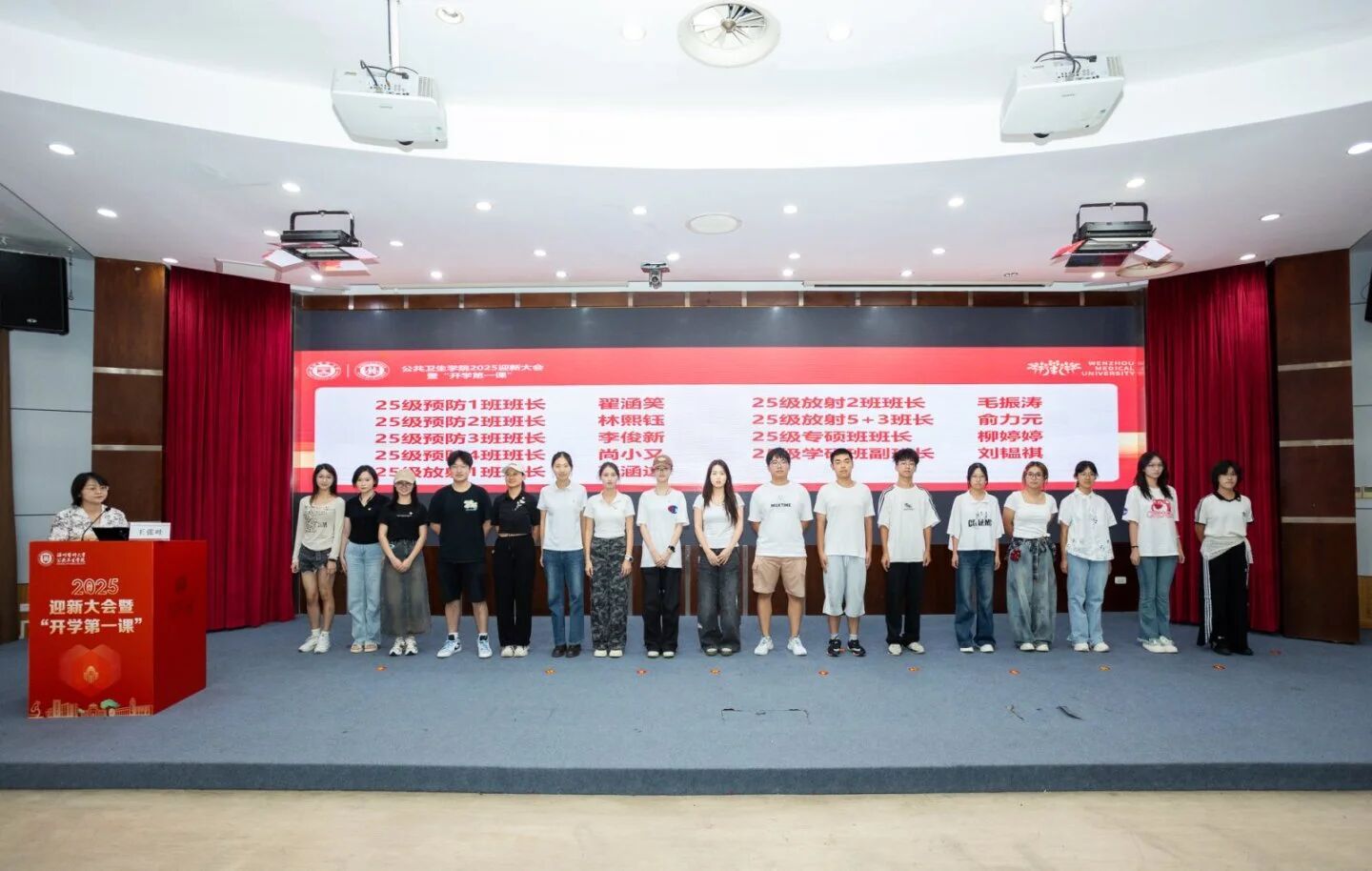 各学系(中心)负责人、研究生导师代表、25级新生班主任、各行政科室负责人、全体学工辅导员,以及研究生会代表、学生会主席团、新生班助和新生班长等依次亮相,勾勒出“公卫师生一家亲”的美好画面。