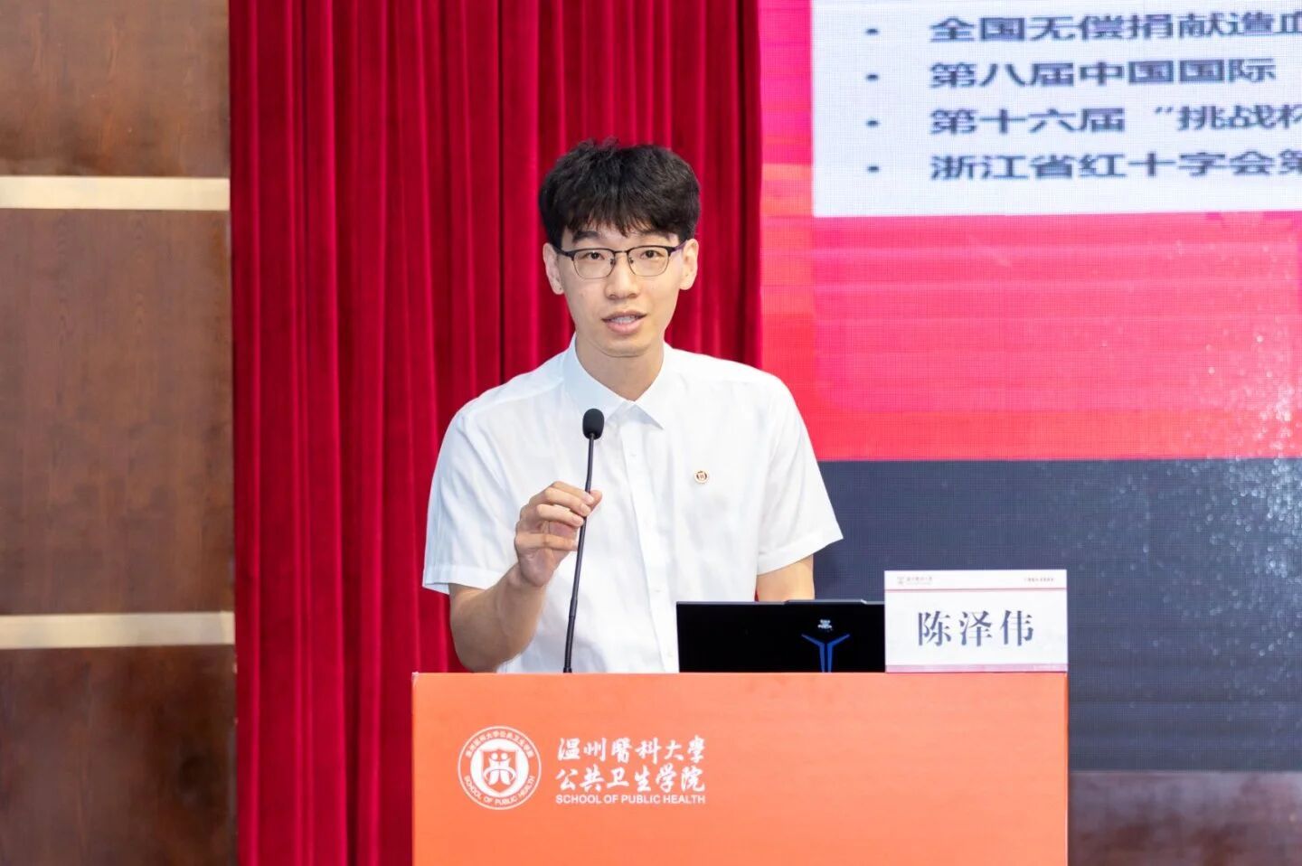 优秀校友陈泽伟学长致辞,并作“生命相髓”项目宣讲。他用两次捐献造血干细胞的亲身经历诠释何为超越,为新生带来了充满力量的分享,勉励新生秉持“自律、自主”的精神,在探索与挑战中实现自我超越。从经验传承到公益实践,“生命相髓”的故事让大家看到,公卫人的爱可以传递的很远。
